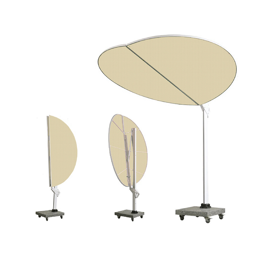 Saving space, By specifying the mast height, crank handle height, and shade extension, you can adjust your wall attachment to meet the available area. The shade is turned to the side and away of the way when Butterfly Umbrella shuts.